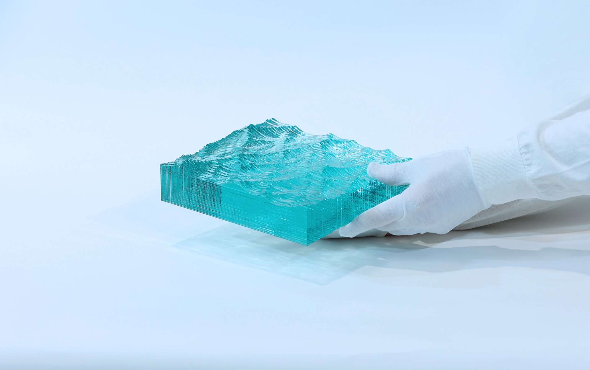 Laminated glass and cast bronze.